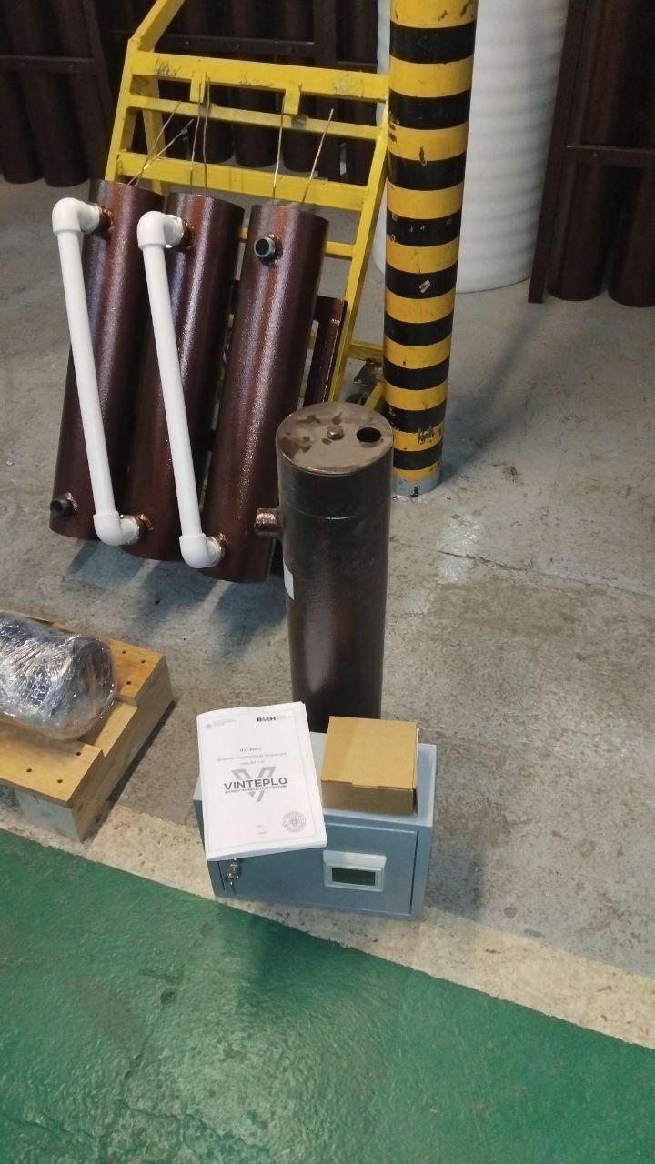 Вихревой индукционный нагреватель мощностью 7 кВт, работает от однофазной сети 220 В. Нагревает теплоноситель до 95°С, при максимальном рабочем давлении системы до 3 МПа. Диаметр присоединительных патрубков 25 мм. Сечение одной жилы медного силового кабеля, не менее 10 мм².